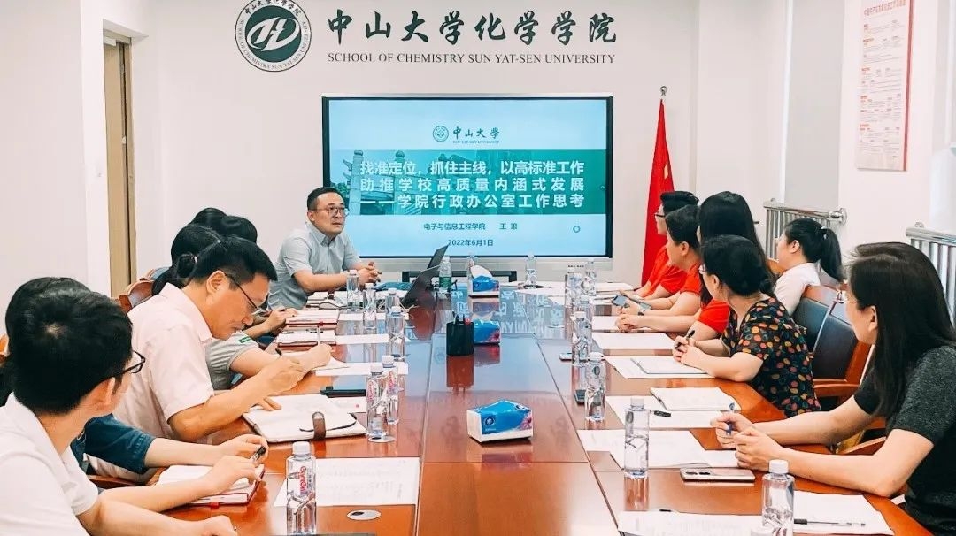 王琅副书记作了题为“找准定位,抓住主线,以高标准工作助推学校高质量内涵式发展——学院行政办公室工作思考”的专题分享,从“办公室工作定位、办公室工作原则、办公室工作几层关系、办公室工作几点提醒”四个方面分享了自身对办公室工作的理解和思考。他指出,学院行政办公室承上启下、沟通内外,是学院各项工作“枢纽”和“窗口”,也在学校事业发展中发挥着“润滑剂”和“助推剂”的作用,任务繁重、责任重大、使命光荣。他带领与会人员共同学习了习近平总书记关于办公厅(室)工作的重要论述,并结合中山大学行政工作要求,提出学院党政管理人员要心怀“国之大者”,以学生成长为中心,更好地贯彻落实学校和学院党委的工作部署,更好地服务师生。最后,王琅副书记还从“分工与协同”、“服务与管理”等八个层面关系进行梳理分析,帮助与会人员更好地提高认识,理清思路,并对院系党政管理人员提出十项希望进一步重视和努力的方向。