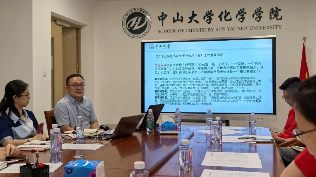 座谈交流开始,冯双书记首先对威廉希尔中文网站平台党政管理队伍到访表示热烈欢迎,他表示刚刚举行的学校春季工作会议提出要总结和传承中大文化,守正创新,继往开来,以立德树人为根本,以队伍建设为核心,以学科交叉融合为重点,以院系建设为基础,以体制机制改革为动力,稳步扎实推进学校高质量内涵式发展,为学校新的发展阶段确定了明确的工作目标。院系党政管理团队作为学校育人队伍的重要组成部分,在学校事业发展大局中也发挥着重要作用。为此,他希望不断加强不同院系间党政管理队伍的互动交流,取长补短、集思广益,进一步增强团队人员的全局意识和业务能力,着力于如何更好地为师生提供优质服务,为学校“双一流”建设提供更加坚强的支撑保障。紧接着,化学学院党政办公室李颖主任介绍了该院管理服务机构的构成、学院行政工作的日常要求及常规模式,并就学院行政工作中经常遇到的一些共性问题提出探讨。