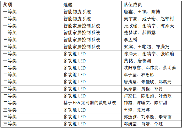 在两个多小时的展示与答辩中,同学们别出心裁,在完成题目基本要求的基础上进行了许多创新性的开发,将打地鼠、贪吃蛇、小鸡恰恰舞等喜闻乐见的游戏融入到了作品之中,取得了令人惊叹的效果,得到了评委们的一致好评。其中选择智能物流系统赛题的唐鑫小组和选择智能家居控制系统的陈泽天小组在校内赛的评审中更是凭借着充分的准备和卓越的作品设计脱颖而出,赢得了评委老师们的盛赞,进入了本年度“广州市六校大学生电子设计校园邀请赛”的决赛,并且在首次参赛的情况下即取得了优异的成绩,双双获得了二等奖。