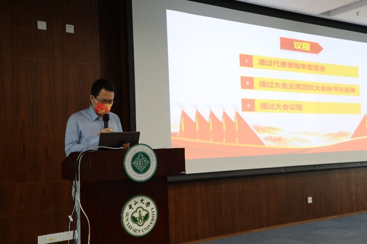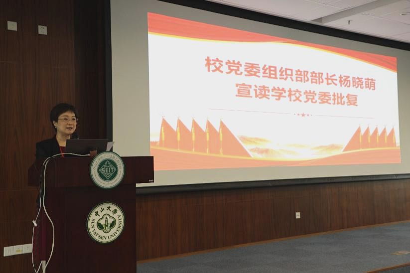 杨晓萌宣读《关于同意召开中共中山大学威廉希尔中文网站平台第二次党员代表大会的批复》和《关于中共中山大学威廉希尔中文网站平台新一届委员会委员候选人预备人选的批复》,并对大会的召开表示热烈祝贺。