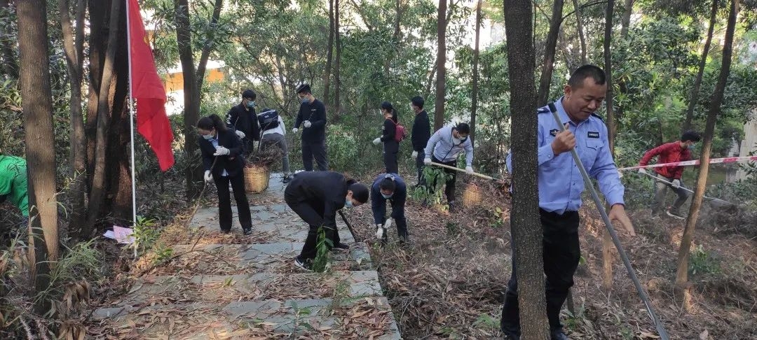 在清理活动中,支部党员们也不断根据实际情况进行分工调整,优化清理流程,努力解决问题。比如,在清理活动前期,大家发现负责搬运枯枝杂草上下山的同志总是满头大汗,就会进行轮换清理和搬运,最后女同志们也一起加入搬运队列,共同完成艰难的搬运工作。再比如,在活动后期,大家发现枯枝杂草基本已被清理并堆积好,但由于箩筐数量较少,搬运上下山以及等待垃圾车的时间较久,效率较低。这时,大家开始集思广益,有的同志主动挑出较大的树枝,直接双手抱住搬下山,有的同志则从别处找来废弃的蚊帐、被套等,一次性装走了好几个箩筐才能装下的枯枝杂草,从而大大提高了搬运效率。