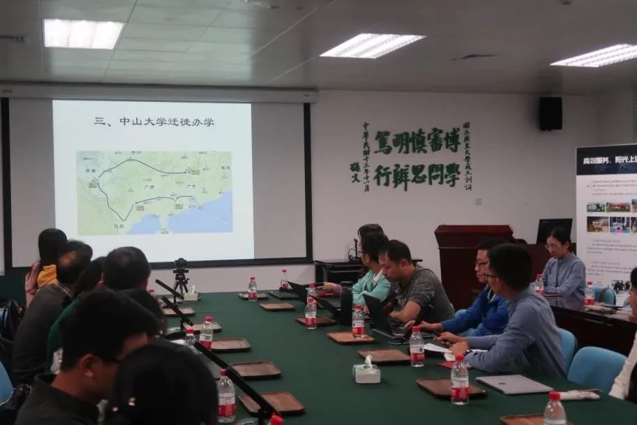 会上,两院师生还就团学工作组织开展、大类新生培养、青年教师专职辅导员工作探索等进行了积极交流探讨,现场气氛热烈。会后,一行人来到会议室外,参观了中法核工程与技术学院党史学习教育系列活动《抗战时期中山大学粤北办学史展览》。展览介绍了中山大学在抗战时期辗转办学时在每处校址的办学情况,帮助大家对于中山大学悠久办学历史有了更深的理解,也更加感受到中山大学历史中蕴含的红色血脉。
