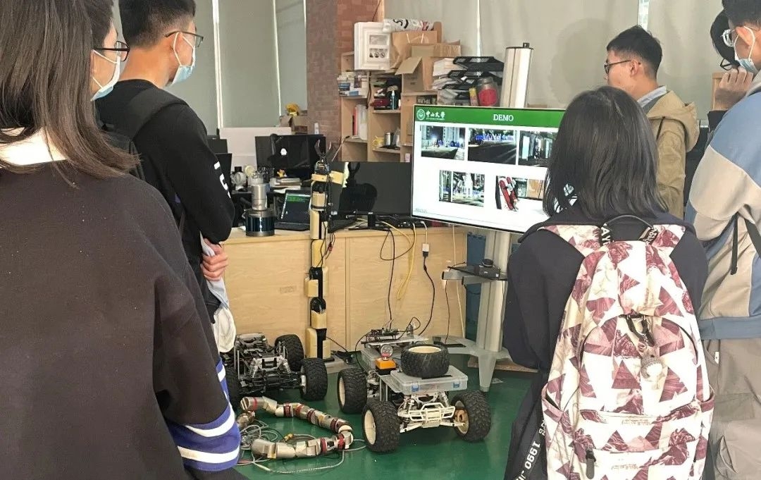 无人系统实验室的学长们进行了科研报告,为大家普及无人操作系统和仿真生物系统的原理,演示无人小汽车的操作。随后同学们亲手触碰仿真蛇、仿真鼠,近距离观察它们的行动模式。通过亲身接触先进的科研成果,同学们大开眼界,也产生了浓浓的科研兴趣。