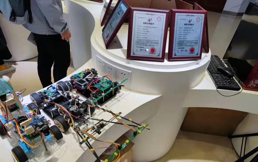 一走进“学生开放实验室”,颇有未来科技风范的智能气息扑面而来。明亮的展览室中,同学们睁大了似有星光的眼睛,在智能车队成员的介绍下,寻觅着各种科技成果,智能小车、无人机……生怕错过任何一处细节。抬眼望去,展柜上摆满的“发明专利证书”和荣誉墙上满满的获奖证书见证了威廉希尔中文网站平台智能车队的卓越进步和光辉荣耀,深刻地激发了同学们立志创新、精益求精的信念,坚定了同学们不断打磨自我、追求卓越的终身追求!