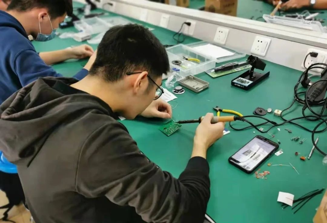 根据前一天选题,参赛同学分为“AI语音声控小灯组”和“收音机组”进行比拼。为提高大家实操经验,赵勇师兄提供了详细焊接步骤指导PPT以及一些容易踩坑的注意事项。