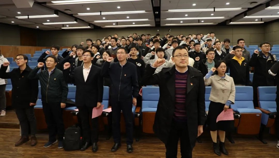 电子科学与技术本硕第二党支部副书记李健烨作为优秀学生党员代表发言。他阐述了自身关于青年党员如何做到不负时代、不负韶华的思考,内修外行紧跟时代步伐,自我省视提升个人能力,叩问初心坚定理想信念。通过重温入党誓词,李健烨同志希望与各位新党员一起共同进步。