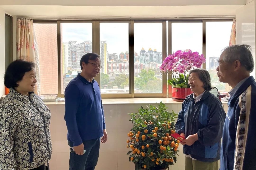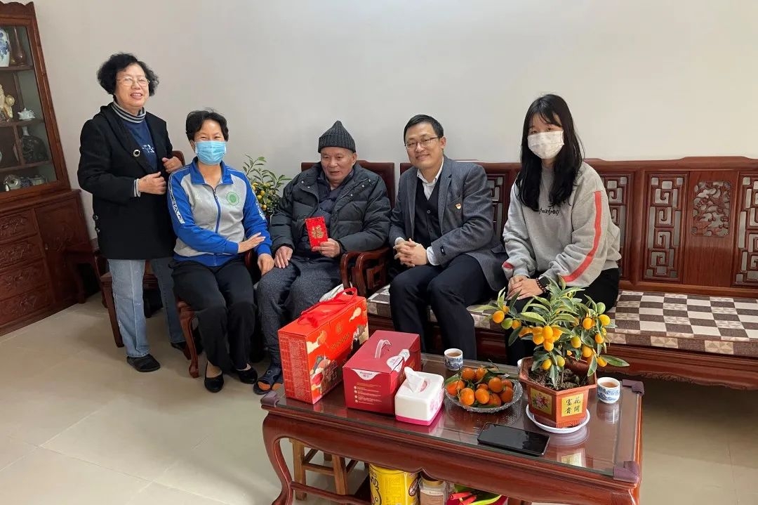 春节将至,岁寒送暖,为弘扬关爱老同志的光荣传统,使广大老同志深切感受到以习近平同志为核心的党中央的关怀和温暖,营造尊老敬老爱老的和谐氛围,1月28日,学院党委刘飞书记带队走访探望退休教师代表,为他们送去组织关怀和新春祝福。学院党委副书记王琅、党委委员陈弟虎,学院退休党支部书记陈云洽,学院离退休分会理事李宁、黄少芬,人事秘书林嘉欣、团委副书记林玥琪等陪同参加慰问活动。