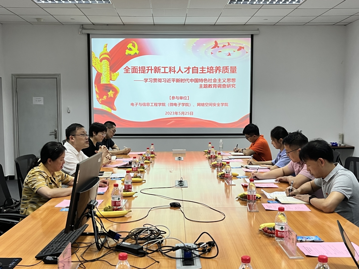 二、聚力交叉融合,推动院际交流。学科的交叉融合是新工科建设的重要路径。学院分别联合华南理工大学电子与信息学院、中山大学网络空间安全学院等兄弟院系开展主题调研,讨论新工科人才培养的经验做法和提升举措,同时探索不同学科交叉融合的实施路径,共谋新工科可持续发展:一是依托光电材料与技术国家重点实验室为平台,规划建立“前沿交叉学科讲座论坛”,深化基础学科和应用型工科交叉融合;二是建立健全兄弟院校之间的定期沟通交流机制,通过经验分享、相互学习和互助发展,推进学院应用型工科与生物、医疗和农业学科的融合。