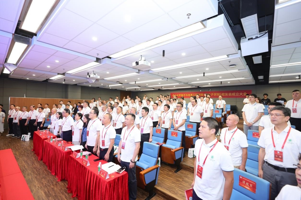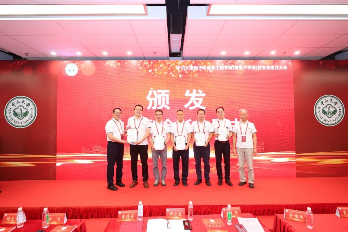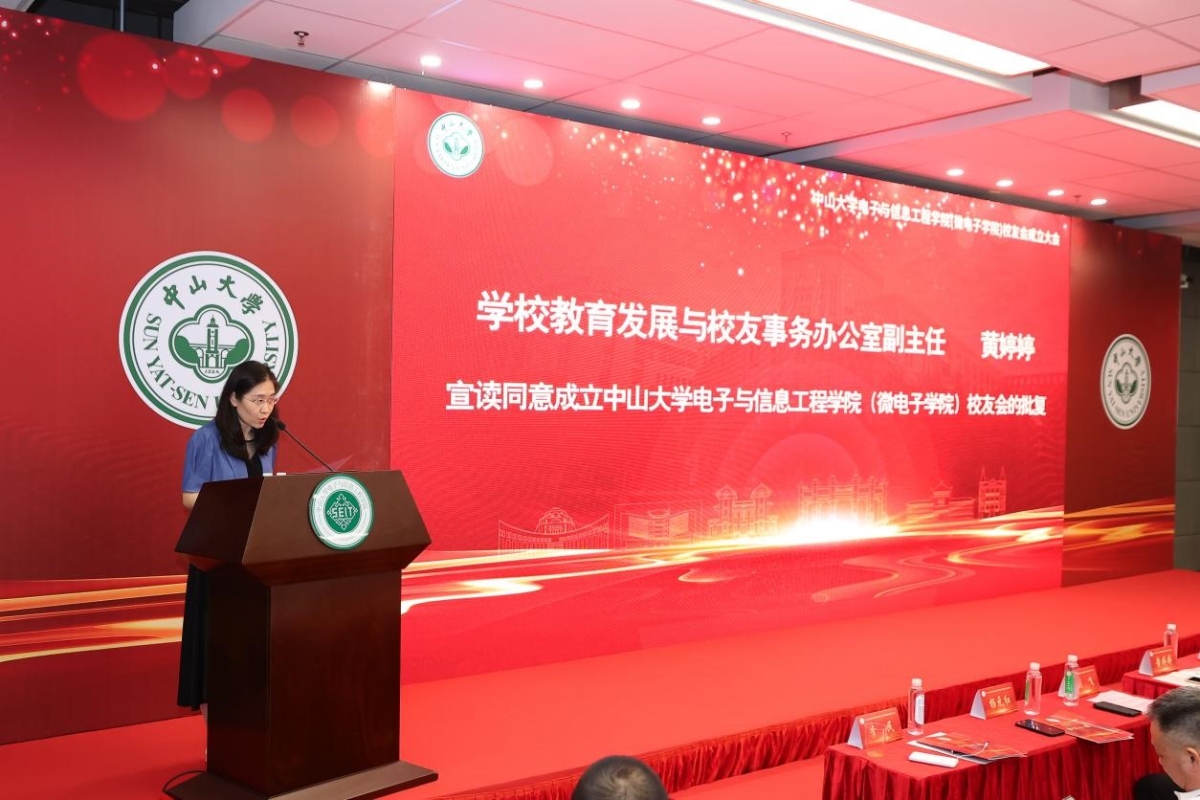 6月10日下午,威廉希尔中文网站平台校友会成立大会暨第一届校友会第一次会议隆重召开。学校教育发展与校友事务办公室副主任黄婷婷,原电子系副书记吴猛老师等老领导,粤芯半导体总裁陈卫、广州未名中智教育科技有限公司总经理李民等来自全国各地的校友代表,原学院院长、现任学校信息学部主任、光电材料与技术国家重点实验室主任邓少芝教授等学院前领导,学院院长佘峻聪教授,学院党委书记刘飞教授,以及学院师生代表共100余人参加大会。学院党委副书记李敏智、学院校友会第一届理事会会长李民分别主持大会各项议程。