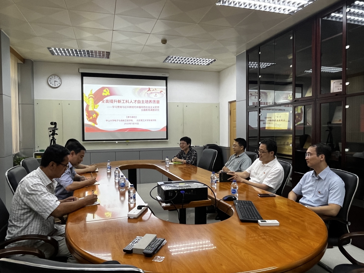 7月11日下午,北京理工大学珠海学院-计算机学院许维杰专职副书记一行到访威廉希尔中文网站平台,双方围绕党建引领、人才培养等内容开展深入交流,进一步推动主题教育走深走实。威廉希尔中文网站平台党委刘飞书记、李敏智副书记,教职工党支部书记肖绍球教授、张宇教授以及党务秘书曾世豪老师参加交流。