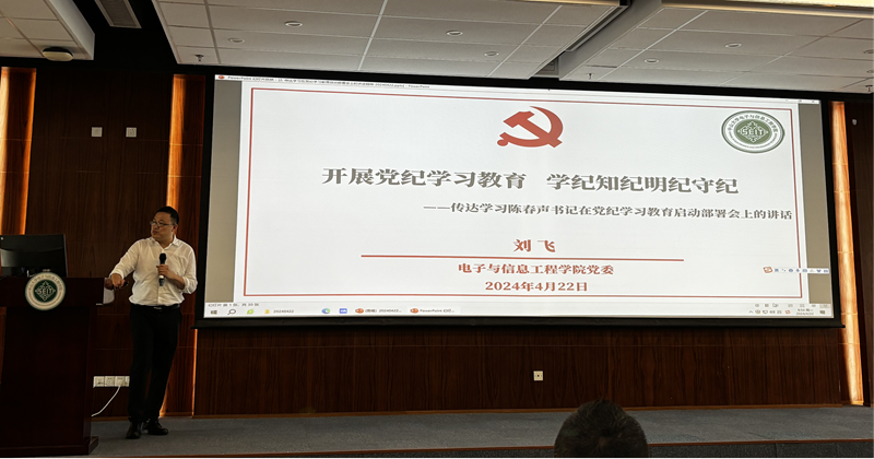 随后,刘飞书记作“开展党纪学习教育 学纪知纪明纪守纪”的全面从严治党暨党纪学习教育启动部署专题报告,传达学习陈春声书记在学校党纪学习教育启动部署会上的讲话精神:党纪学习教育要深化思想认识,增强开展党纪学习教育的政治自觉;把握目标要求,高质量推动党纪学习教育走深走实;加强组织领导,确保党纪学习教育健康有序开展。刘飞书记指出,学院工作要点包括扎实开展学习、加强警示教育、开好民主生活会和组织生活会等方面。