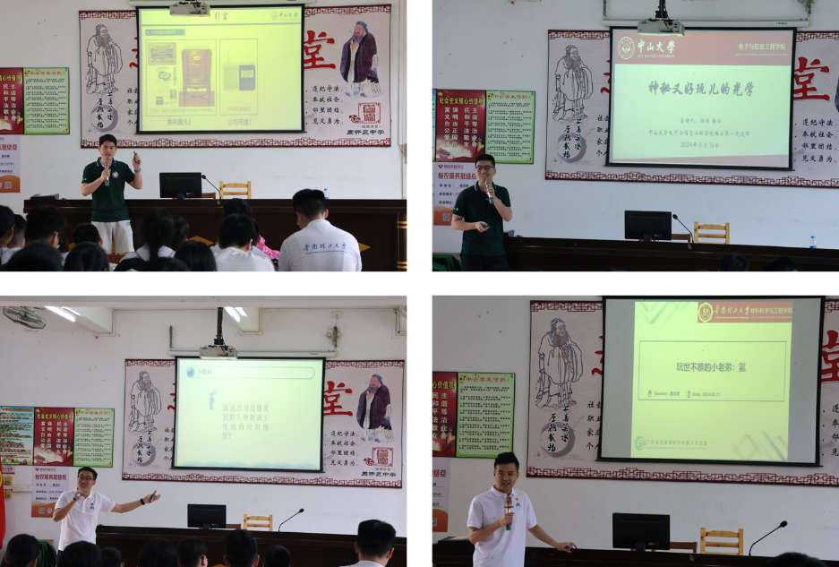 为贯彻落实党的二十大精神,积极响应广东省“百千万工程”号召,促进科技知识传播与普及,培育青少年的科学志趣,2024年5月17日下午,中山大学威廉希尔中文网站平台博士第一党支部与华南理工大学材料科学与工程学院大学城金属博士党支部联合开展“博士科普行”主题党日活动。两校博士生党员在肇庆四会市周开泉中学开展“科普报告”等系列活动,吸引了众多中学师生参加,助力提升青少年的科学素养,引导树立“科技报国”远大理想。
