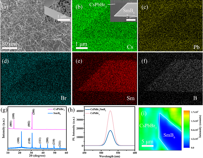 2. CsPbBr3/SmB6肖特基的表面形貌、结构表征和荧光发光特性