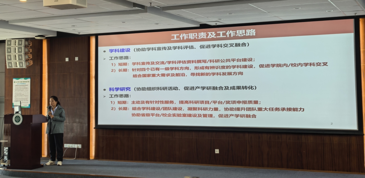财务处龙志平老师进行科研经费制度宣讲,介绍了科研经费相关政策文件及查询方式、常见业务办理流程,并对科研经费使用注意事项、项目结题注意事项进行了强调。