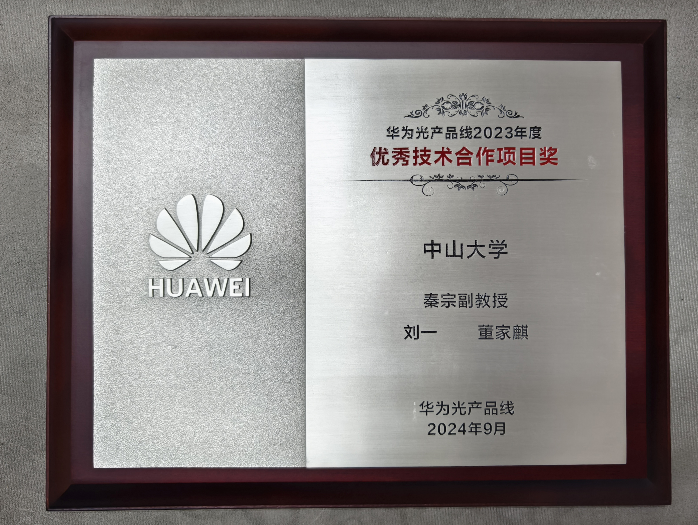 科研动态│威廉希尔中文网站平台秦宗副教授荣获华为光产品线“优秀技术合作项目奖”