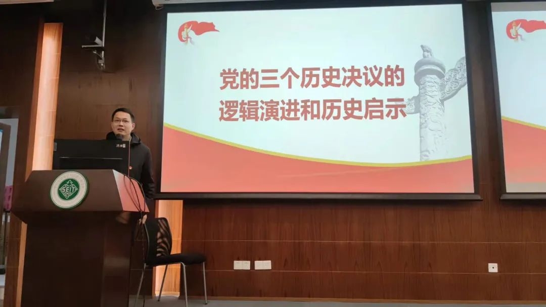 为更深刻理解十九届六中全会深刻内涵和重要意义,本次活动邀请到张东老师讲授题为《党的三个历史决议的逻辑演进和历史启示》的专题党课。张老师首先阐释了三个历史决议的逻辑演进,通过对决议产生的历史背景、主要内容以及重要意义讲解,带领大家深刻领悟每个历史决议背后的深远内涵。张老师还从三个历史决议共同特点出发,分析比较了三个历史决议之间关系,指出三个历史决议虽是在不同历史阶段提出,但都形成于重要历史关头,发挥着重要历史作用。第三个历史决议,让全党从百年奋斗中看清我们为什么能够成功、弄明白未来我们怎样才能继续成功,从而更加自觉地践行党的初心使命,在新时代更好地坚持和发展中国特色社会主义,以更加昂扬姿态迈进新征程,建功新时代,夺取新胜利。