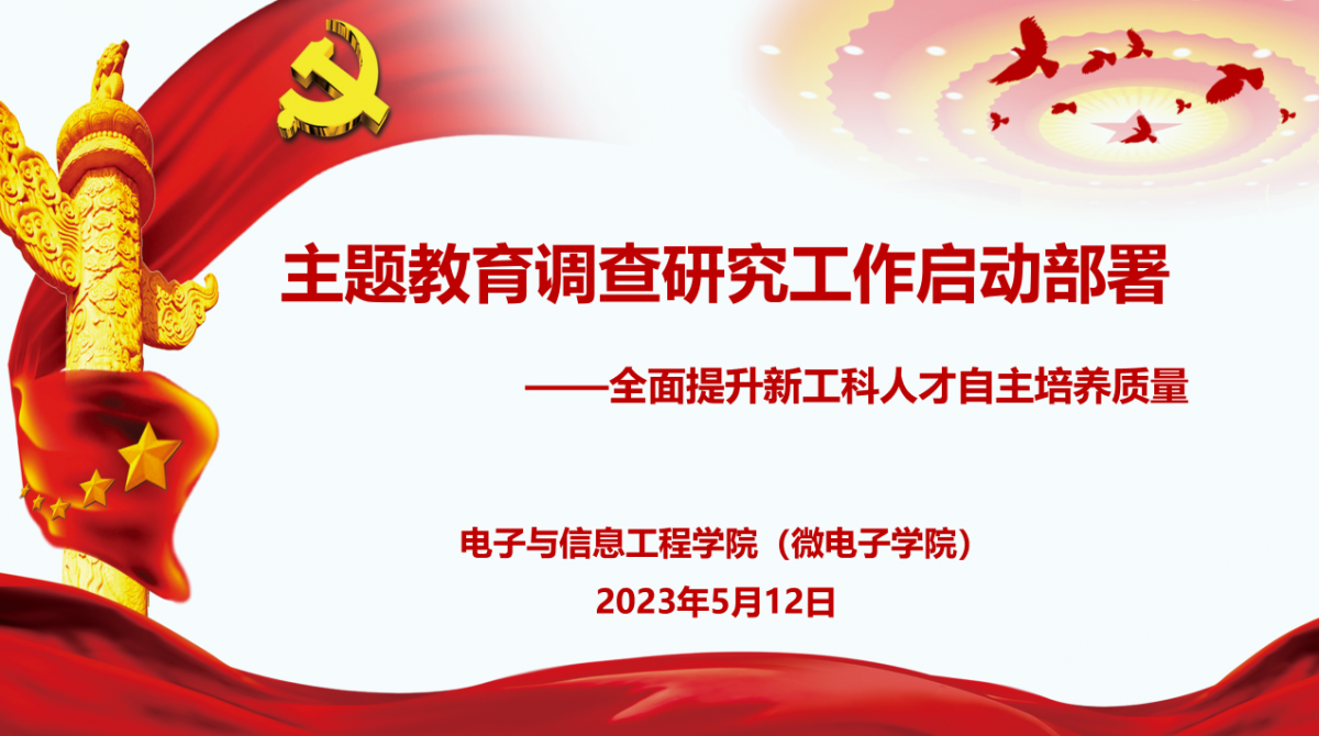 会议对学院主题教育调查研究工作进行了启动部署。调查研究是我们党的传家宝,是谋事之基、成事之道。根据学校有关要求,学院党委深入研究,立足实际,以“全面提升新工科人才自主培养质量”为主题,周密制定调查研究工作方案。学院党委坚持目标导向和问题导向,将综合运用座谈访谈、随机走访、问卷调查等多种方式,面向学院师生、校内外兄弟院系、行业头部企业等全面展开调研,既要沉下去摸清情况和问题,也要抽出来找准思路和举措。此次调研旨在破解学院新工科人才自主培养过程中遇到的难题,探索提升新工科人才自主培养质量的有效路径,着力提升学院人才培养质量和社会服务能力,并有效推动学院事业高质量内涵式发展。